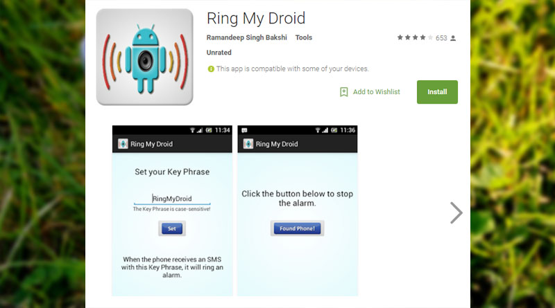 Anda bisa mengunduh aplikasi Ring My Droid melalui Google Play Store. Setelah diinstal, jalankan aplikasi ini dan tentukan key phrase-nya. Aplikasi ini akan bekerja saat Anda kehilangan smartphone milik Anda. Saat kehilangan, cukup kirimkan SMS dari nomor keluarga, rekan, atau pacar ke nomor ponsel Anda berisikan key phrase yang telah diaktifkan sebelumnya. Setelah smartphone Anda menerima SMS tersebut, maka secara otomatis smartphone akan berdering walaupun berada dalam keadaan silent.